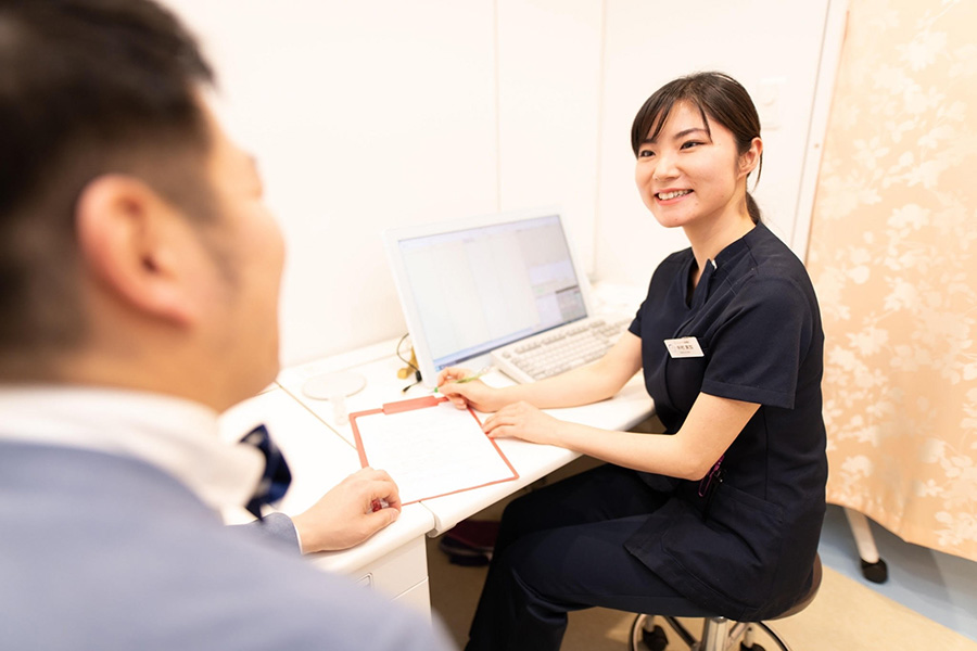 まず、問診票をご記入いただき、医師の診察を受けていただきます。施術に関する大切な説明を行い、ご納得いただいた上で同意書にサインをお願いします。